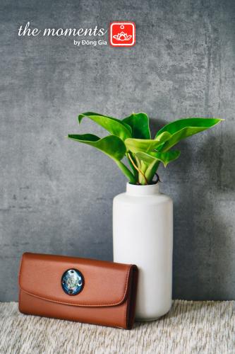 The leather wallet from The Moments is a handcrafted masterpiece, meticulously crafted with a strong mark of sophistication and style. The special highlight lies in the handcrafted ceramic button, adorned with a unique glaze, giving the wallet a distinctive charm.