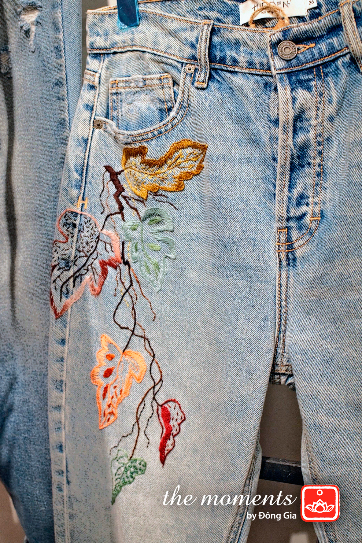 Quần Jean dài thêu hoa từ The Moments mang đến một vẻ đẹp độc đáo, kết hợp giữa sự tối giản, thanh lịch và những chi tiết thêu tinh xảo. Thiết kế với phom dáng suông dài mang lại sự thoải mái tuyệt đối, đồng thời tôn lên vẻ đẹp tự nhiên và phóng khoáng. Những hoạ tiết hoa lá thêu tay tỉ mỉ ở phần ống quần được lấy cảm hứng từ vẻ đẹp bình dị của thiên nhiên, tạo nên một phong cách vừa hiện đại, vừa cổ điển.