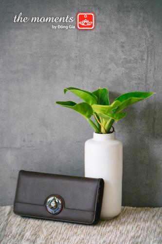 Chiếc ví da từ The Moments là một tác phẩm thủ công được chế tác tỉ mỉ, mang đậm dấu ấn của sự tinh tế và phong cách. Điểm nhấn đặc biệt nằm ở chiếc nút cài làm từ gốm thủ công, với lớp men hỏa biến độc đáo, tạo nên sự khác biệt không thể trộn lẫn.
