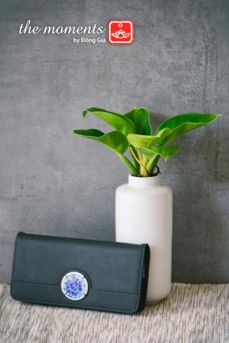Chiếc ví da từ The Moments là một tác phẩm thủ công được chế tác tỉ mỉ, mang đậm dấu ấn của sự tinh tế và phong cách. Điểm nhấn đặc biệt nằm ở chiếc nút cài làm từ gốm thủ công, với lớp men hỏa biến độc đáo, tạo nên sự khác biệt không thể trộn lẫn.